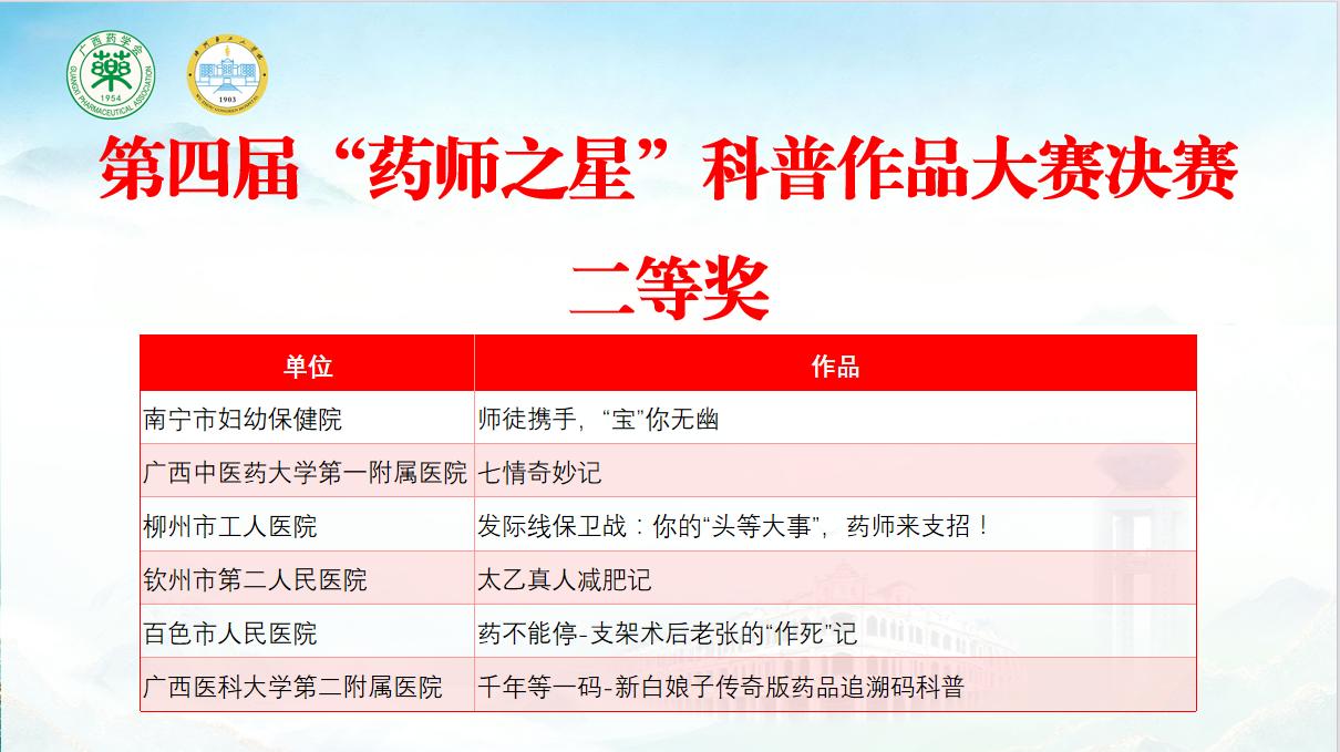 我院荣获广西药学会第四届“药师之星”科普作品大赛决赛二等奖